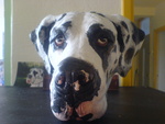 2007De lieveling van mijn oom en tante in beton met acrylverf... Ernaast een foto van het dier.